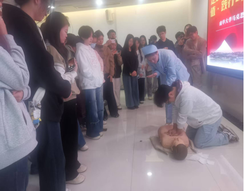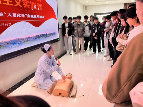 欧阳蔡琳老师亲身示范教学,给同学们手把手传授心肺复苏急救技能,并详细回答了同学们关于医疗工作的一系列疑问。欧阳蔡琳老师说,医生的职业是充满使命感和责任感的职业。对于医生而言,每一次的救治都是对生命的敬畏与尊重,时刻将患者的健康放在首位,以毕生精力追求挽救生命的事业,他们的使命感与责任感促使他们不断前行。在医护人员眼中,每一位患者都是宝贵的生命,唯有敬业精神和专业素养,才能为患者的健康保驾护航。