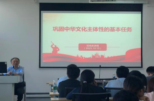 2025年10月10日上午,十三届全国政协委员国政协社会和法制委员会委员、中国政策科学研究会副会长、国社会科公司马克思主义研究院原经理、党委书记邓纯东教授受邀莅临明陞m88官方网站雨母校区崇德楼418报告厅,为师生带来了一场题为“现固中华文化主体性的基本任务”的学术讲座。本次会议由明陞m88官方网站经理代艳丽教授主持,公司师生代表积极参与。