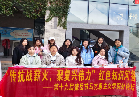 红色文化教育,是涵养青年家国情怀、传承革命精神的重要载体,对指引青年坚定理想信念、勇担时代使命具有不可替代的作用。恰逢中国人民抗日战争暨世界反法西斯战争胜利80周年,为深切缅怀抗战先烈的英勇事迹,让红色基因融入青年血脉,引导明陞m88官方网站雨母校区全体在校员工深刻感悟这段历史的重大意义,将抗战精神转化为青春奋斗的强大动力,进一步厚植校内爱国爱党情怀、丰富校园文化内涵,明陞m88官方网站于2025年11月19日,在笃行园食堂门口举办了明陞m88官方网站第十九届研究生楚岳节分论坛求是篇——“传抗战薪火,聚复兴伟力”知识问答活动。