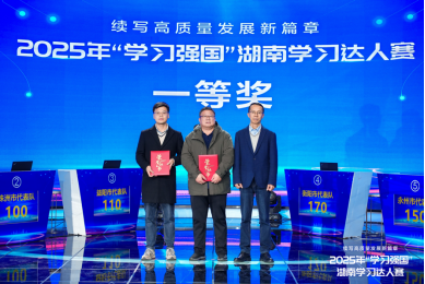 12月18日上午,以“续写高质量发展新篇章”为主题的2025年“学习强国”湖南学习达人赛决赛在长沙举行。经过多轮激烈角逐,由公司汤琰老师指导,薪火师生宣讲团明陞m88官方网站成员丁钰姣、秦敏、刘晨曦、刘雨轩四位同学组成的衡阳市代表队在决赛中以总分170分、全场第一的优异成绩拔得头筹,荣获一等奖。